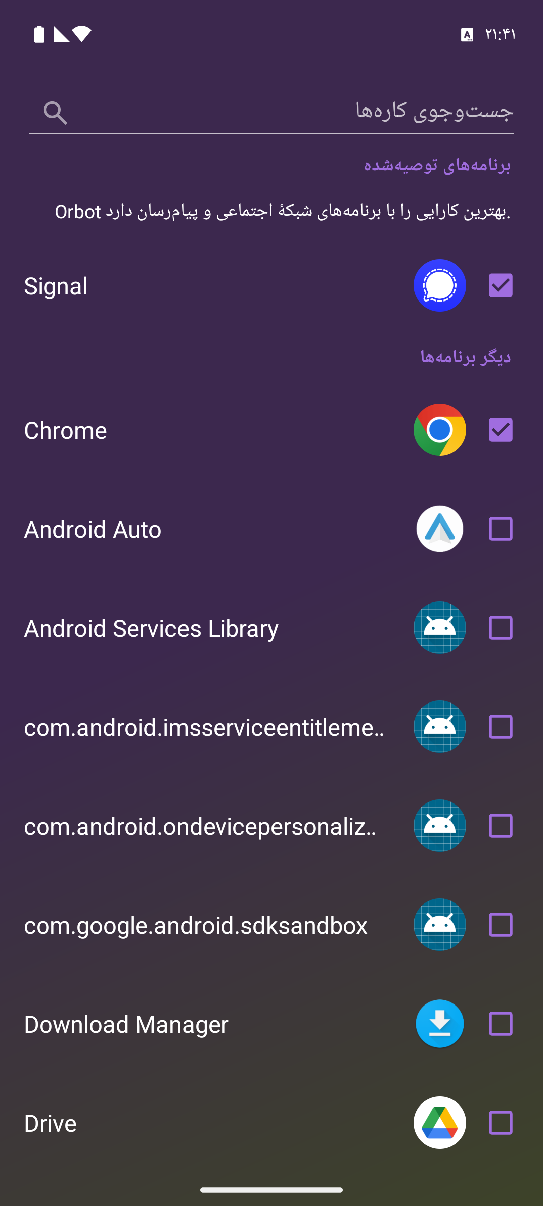 Orbot (روی اندروید) اجازه میدهد بهطور مشخص برگزینید کدام برنامه از طریق Tor مسیردهی شود که اجازه داده همچنان از برنامهها و خدمتهایی که شاید نگران ترافیک آمده از Tor باشند.